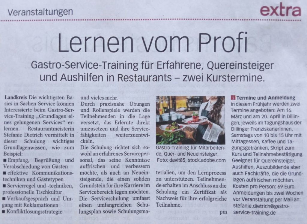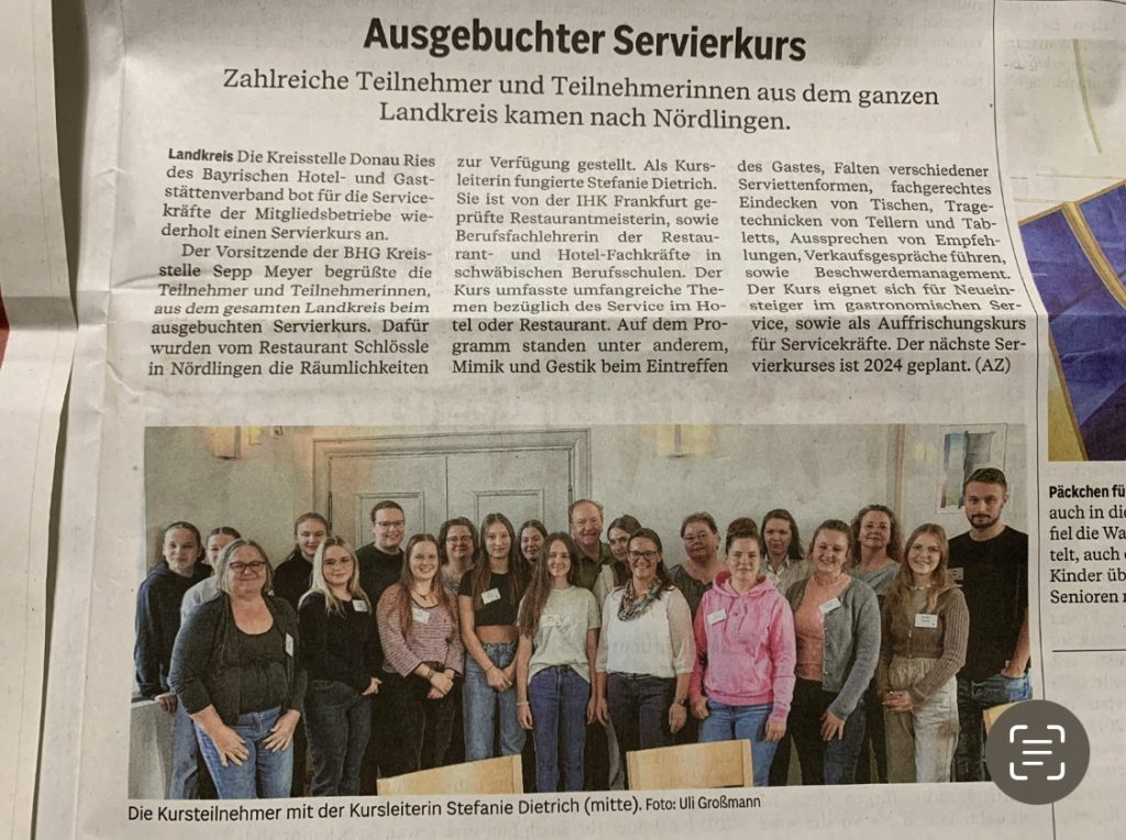 Grundlagen eines gelungenen Services, organisiert vom BHG Donau-Ries und durchgeführt von GastroServiceTraining Stefanie Dietrich